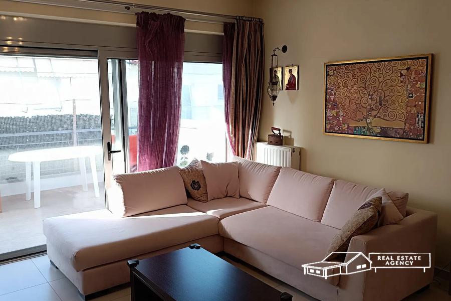 Διαθέτει κουφώματα αλουμινίου με ηλεκτρικά ρολά και σίτες, δάπεδα από πλακάκι, τέντες στα μπαλκόνια, πόρτα ασφαλείας, σύστημα συναγερμού, αποθήκη 6,5 τ.μ. και ανοιχτή θέση στάθμευσης. Η θέρμανση και η ψύξη πραγματοποιούνται μέσω αυτόνομης εγκατάστασης με αντλία θερμότητας και fan coil, ενώ υπάρχει και αναμονή για ηλιακό θερμοσίφωνα.