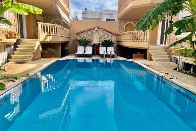 Glyfada-Golf. For sale is a bright, airy ground floor and 1st floor apartment, with a private garden and a 72 sq m heated swimming pool. The ground floor consists of large reception areas with fireplace,...