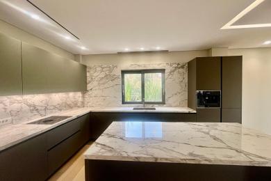 Varkiza, Lathouriza, a stunning, ready-to-move-in villa of 530sqm, on a plot of 460sqm, on 3 levels with a playroom, is available for sale only 5 min drive from the sea.