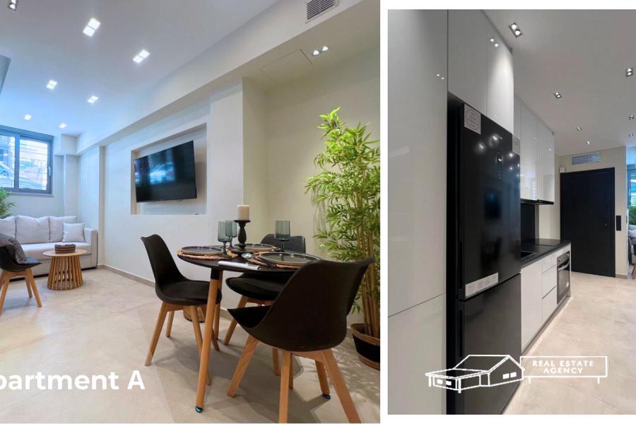 Athens center, a very stylish and hig-end renovated ground floor apartment of 66 sqm is available for sale. It comprises a living room with an open plan kitchen, 2 bedrooms and a bathroom. It has also a storage, a back yard and an independent entrance. It will be delivered by the end of October fully furnished and equipped with double glazing, a/c, safety door and all electric appliances. It is just meters away from the market, all amenites and the metro station. It is great for investment as it has a guarantee rental. The location on the map is indicative. For more info: +30 6932 746491, website: www.merryland.com.gr, Email: sotiropoulou@merryland.com.gr, id: 16114