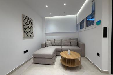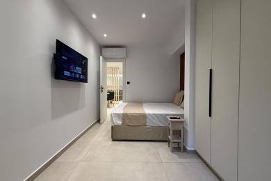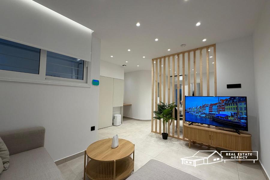 Athens center, a very stylish and hig-end renovated ground floor apartment of 61 sqm is available for sale. It comprises a living room with an open plan kitchen, 2 bedrooms and a bathroom. It has also a storage, a back yard and an independent entrance. It is delivered fully furnished and equipped with double glazing, electric shutters, a/c, safety door and all electric appliances. It is just meters away from the market, all amenites and the metro station. It is great for investment as it has a guarantee rental. The location on the map is indicative. For more info: +30 6932 746491, website: www.merryland.com.gr, Email: sotiropoulou@merryland.com.gr, id: 16115