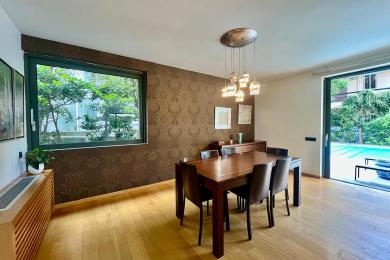 Glyfada-Golf. For sale is a bright, airy ground floor and 1st floor apartment, with a private garden and a 72 sq m heated swimming pool. The ground floor consists of large reception areas with fireplace, direct access to the garden, kitchen with built-in appliances, master bedroom with bathroom and guest wc. On the 1st floor there are 4 bedrooms (one with bathroom), additional bathroom, living room, home cinema and second entrance. The apartment includes oak floors, underfloor heating, central air conditioning, double glazed security windows, security doors, alarm, cameras, 2 solar water heaters, 15 sq m storage room and 3 underground parking spaces. It is ideal for a luxurious residence with comfort, security and privacy in the heart of Glyfada. A unique opportunity for those seeking a high quality of life with style and security. The property is available exclusively from our office. The location on the map is indicative. Contact phone: +30 6932 746491, website: www.merryland.com.gr, Email: sotiropoulou@merryland.com.gr, Id: 16316.