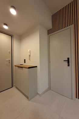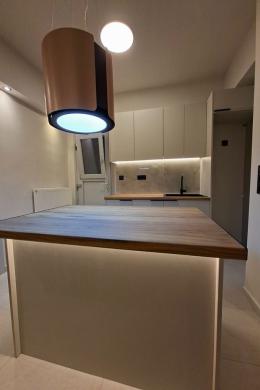 Nea Smyrni, in an excellent location, a ground-floor apartment of 65 sq.m. is offered for sale, fully and luxuriously renovated with an emphasis on contemporary design and functionality. The property consists of two spacious bedrooms, an open-plan living room and kitchen, a large bathroom, and an internal storage area at the entrance. It features a security door, energy-efficient grey aluminum frames with electric shutters and insect screens, 7 cm thermal insulation façade, and full internal insulation. Heating is provided via a heat pump with radiators, while the apartment is further enhanced by suspended ceilings with concealed lighting, large-format tiles in the main areas, and brand-new oak flooring in the bedrooms. The spacious bathroom is fitted with built-in sanitary ware, while the kitchen stands out with a central island, a hanging charcoal-filter hood, and modern design lines. The bedrooms are equipped with large sliding wardrobes. Located in a very quiet area, with direct access to public transportation and access to a courtyard, the property is an ideal choice for both owner-occupation and high-quality investment. The location on the map is indicative. For more info: +30 6932 746491, website: www.merryland.com.gr, Email: sotiropoulou@merryland.com.gr, id: 16513